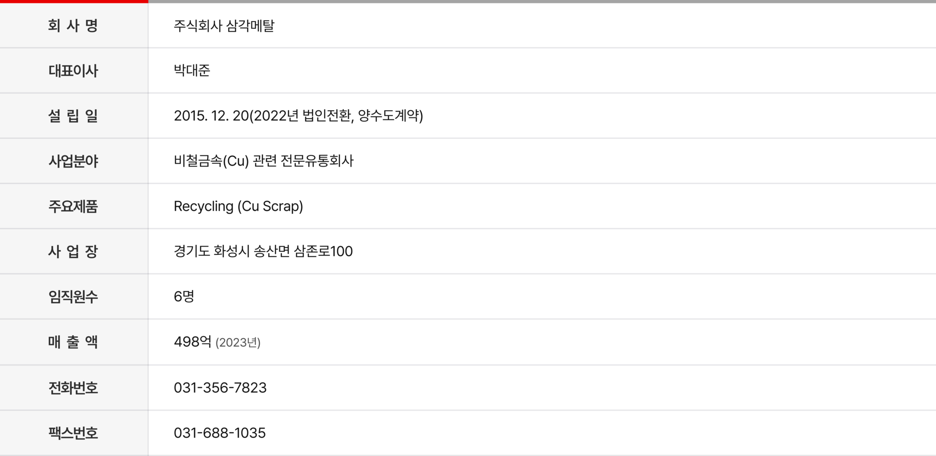 TEL : 031-356-7823 ㅣ FAX : 031-688-1035 ㅣ 담당자 대표 직통 : 010-4024-9203 ㅣ EMAIL : samgakmetal@naver.com ㅣ 주소 : 경기도 화성시 송산면 삼존로100